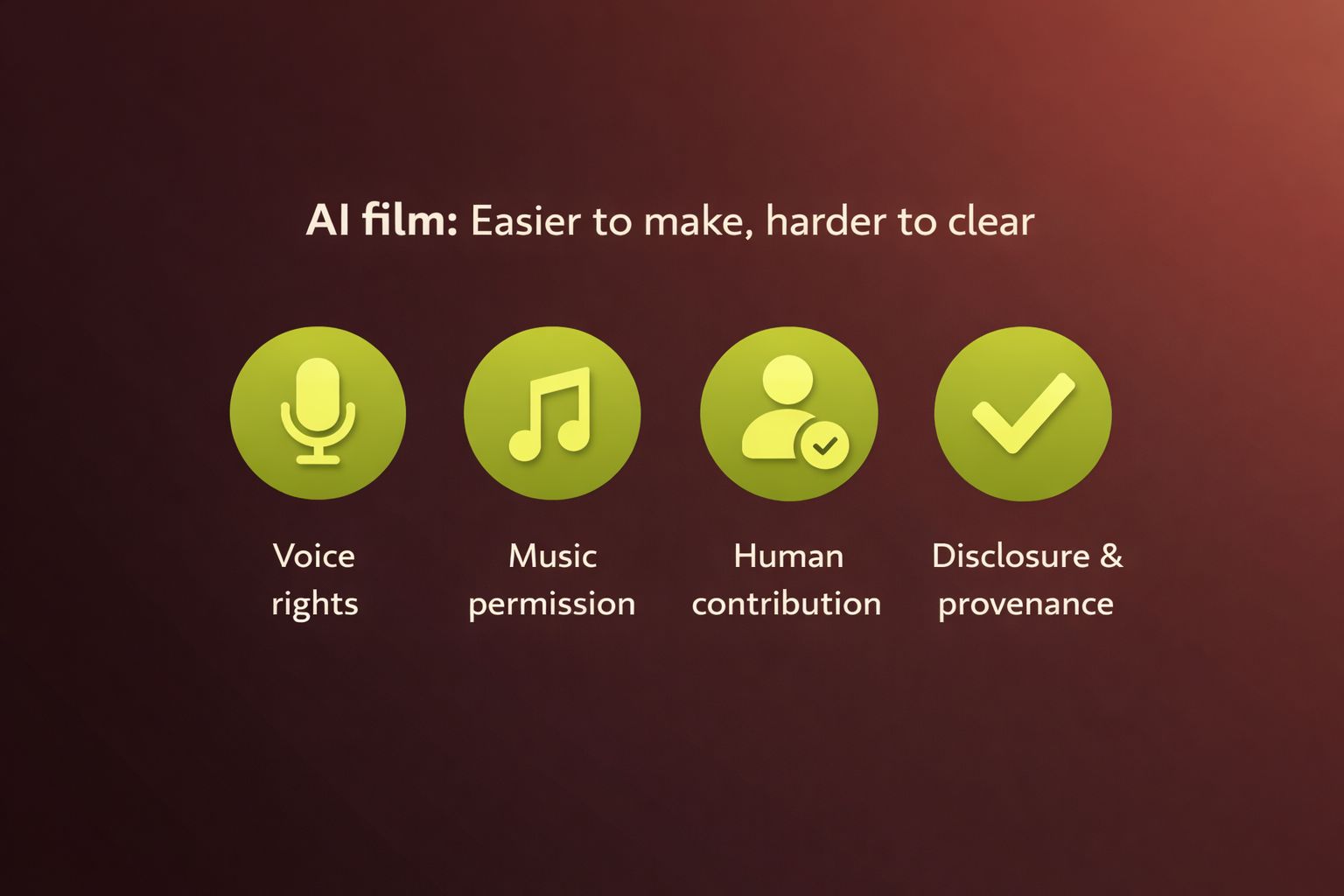 As AI film tools get better at generating voices, songs, dialogue, and synthetic performances, the harder part is often no longer the output. It is whether the work is cleared, attributable, and safe to publish or distribute. The U.S. Copyright Office now separates these issues into different tracks, including digital replicas and copyrightability, which is a useful reminder that voice, likeness, and authorship are not the same thing.
